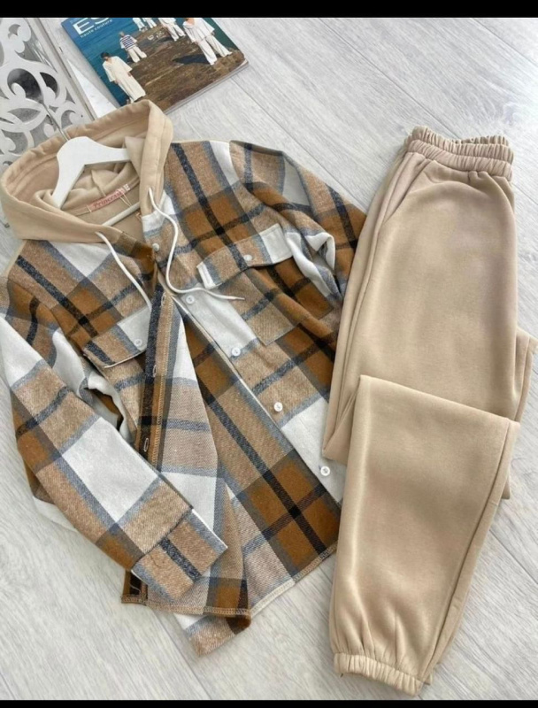 P-51 Комплект рубашка +штаны женский (52, Бежевый)