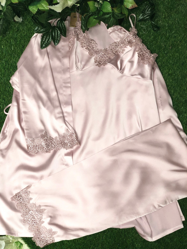 924 Комплект топ +брюки+кардиган на поясе (XL, Пыльная роза)