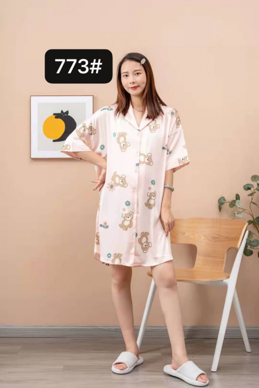 773 Рубашка домашняя (короткий рукав) (Free, Розовый)
